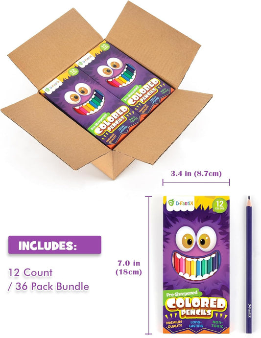 D-FantiX 432 Count Colored Pencils Bulk, 36 Packs Pre-Sharpened Color Pencils Set, Back to School Supplies Aesthetic Kit, Kindergarten Preschool Classroom Must Haves, School Supplies for Teachers