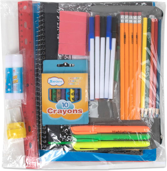 45 Piece School Supply Kit Grades K-12 - School Essentials Includes Folders Notebooks Pencils Pens and Much More!