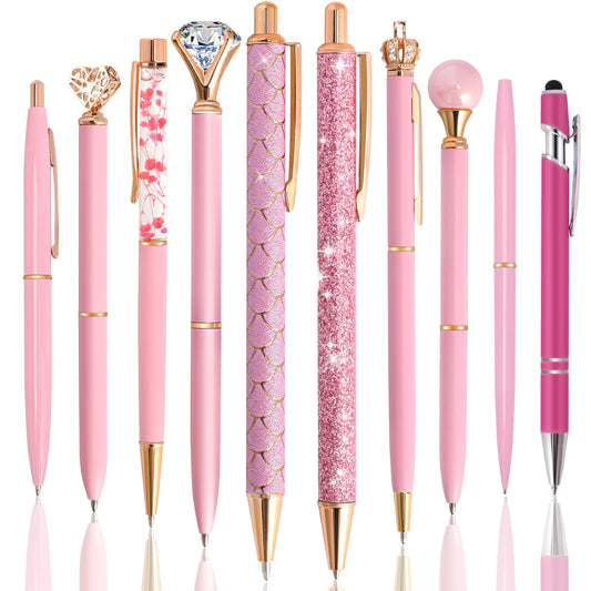 DAIKOYE 10 Pcs Ballpoint Pens Set Party Favors for Kids Purple Gifts Purple Pens for Women Girls Office Supplies School Supplies Black Ink Metal Crystal Diamond Pens